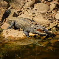 Samice měří 1,5-2 m bez ocasu a 2,5-3 m s ocasem. Váží obvykle 100-160 kg. V kohoutku měří zhruba 80 cm, délka hlavy je 20-30 cm. V průměru dosahují samice délky 2,5 m a váhy 150 kg, délka zubů se pohybuje 4 - 5 cm.